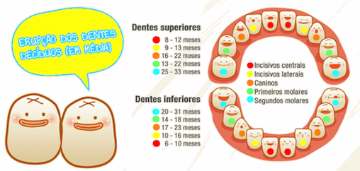 A ordem habitual (mas volto a repetir que há excepções à regra) é: em primeiro lugar os centrais de baixo (incisivos), logo depois os 4 de cima (incisivos centrais e laterais). Após estes os incisivos laterais de baixo. Mais tarde 4 molares, seguidos dos caninos e finalmente completam a dentição de 20 dentes, os segundos molares