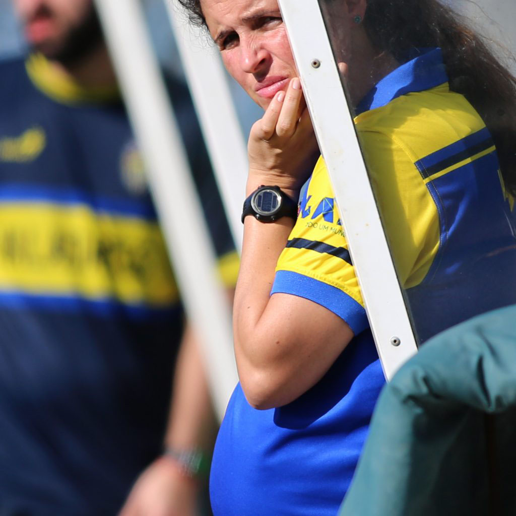 O jogo começa e passado alguns minutos, a treinadora do Valadares sai do banco para dar indicações às jogadoras com o sotaque típico do norte, e para o meu espanto, GRÁVIDA! Uma Barriga LINDA!